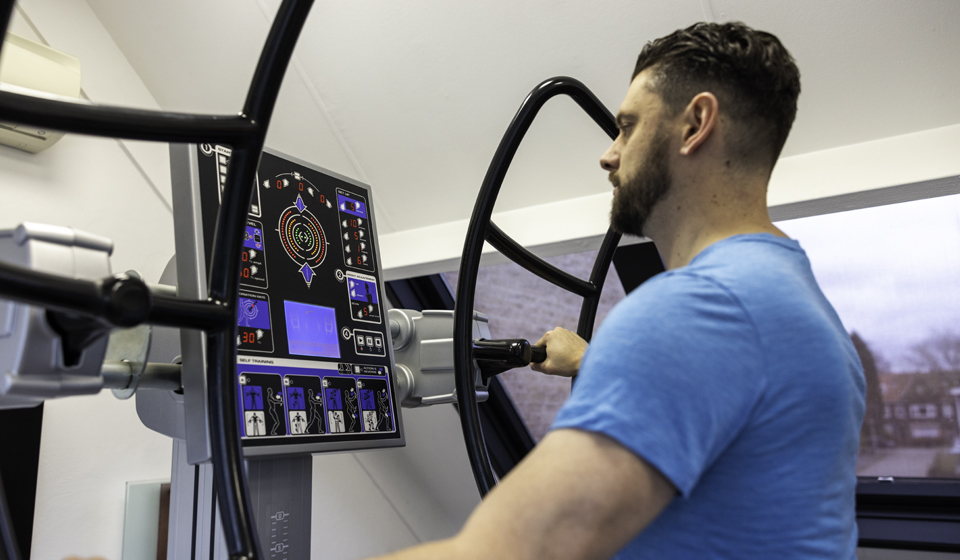 Eric is de enige therapeut in de regio die HUBER inzet voor zijn cliënten. Dit toestel zorgt voor coördinatie, evenwicht, versteviging en houding. HUBER verstevigt de diepe spieren van de wervelkolom en laat benen, armen, bil- en buikspieren tegelijk werken met de wervelkolom. Kortom het hele lichaam wordt in een keer actief gemaakt en getraind. Rustig als het moet en intensiever als het kan.